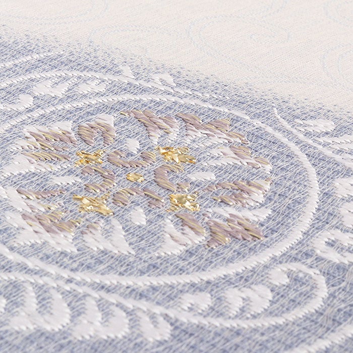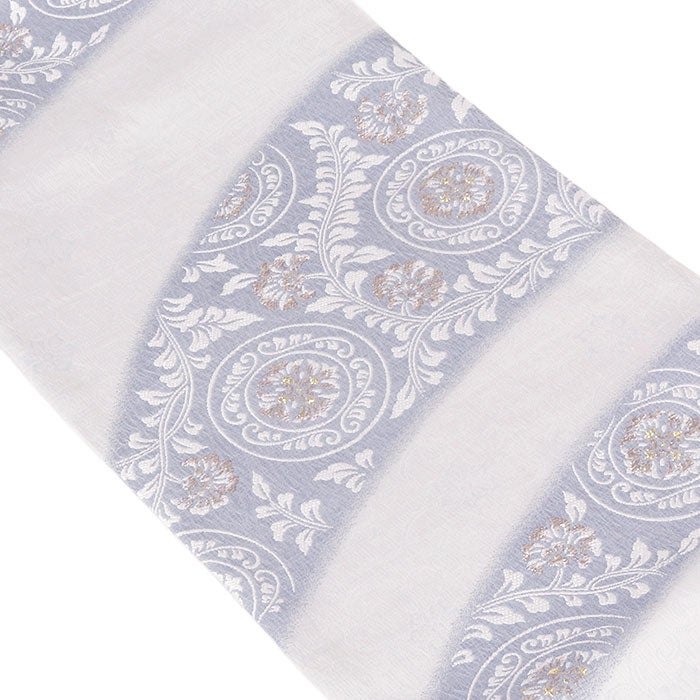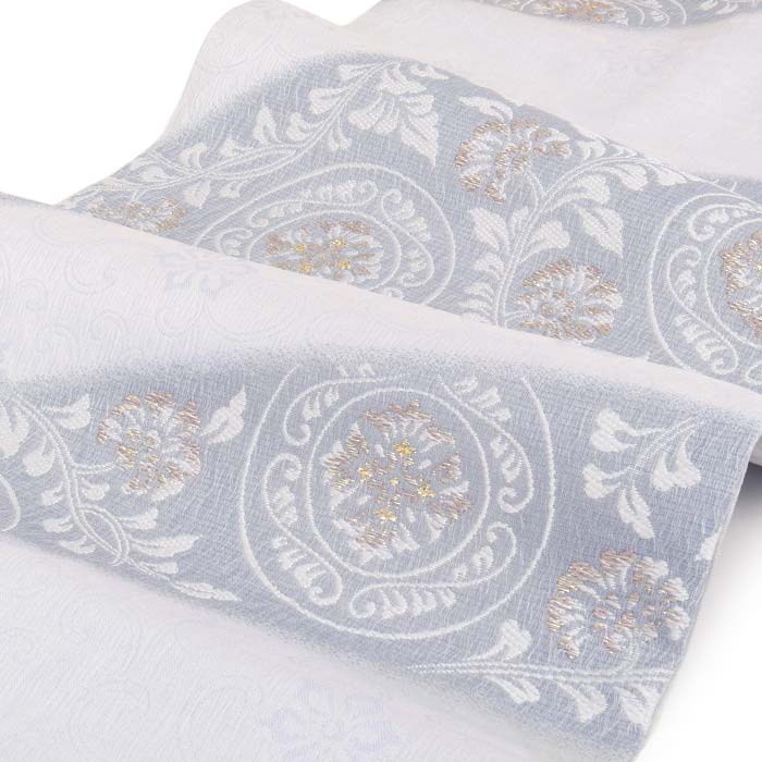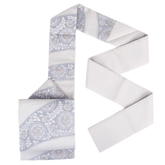 他の画像を見る ≪在庫限り≫ 小紋 紬 色無地 御召 などのお着物に 名古屋帯 水色 薄灰 丸紋 花唐草 西陣織 弥栄織物 普段用 九寸 仕立て上がり 絹 未使用 日本製 新品 春 秋 当店特別価格 ¥ 33,000 税込 (0) お気に入りに登録する