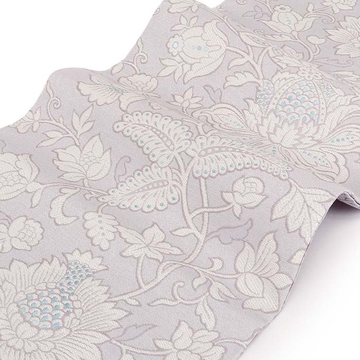 他の画像を見る ≪在庫限り≫ 小紋 紬 色無地 御召 などのお着物に 名古屋帯 薄灰 グレー 牡丹唐草 西陣織 弥栄織物 普段用 九寸 仕立て上がり 絹 未使用 新品 春 秋 冬 当店特別価格 ¥ 33,000 税込 (0) お気に入りに登録する