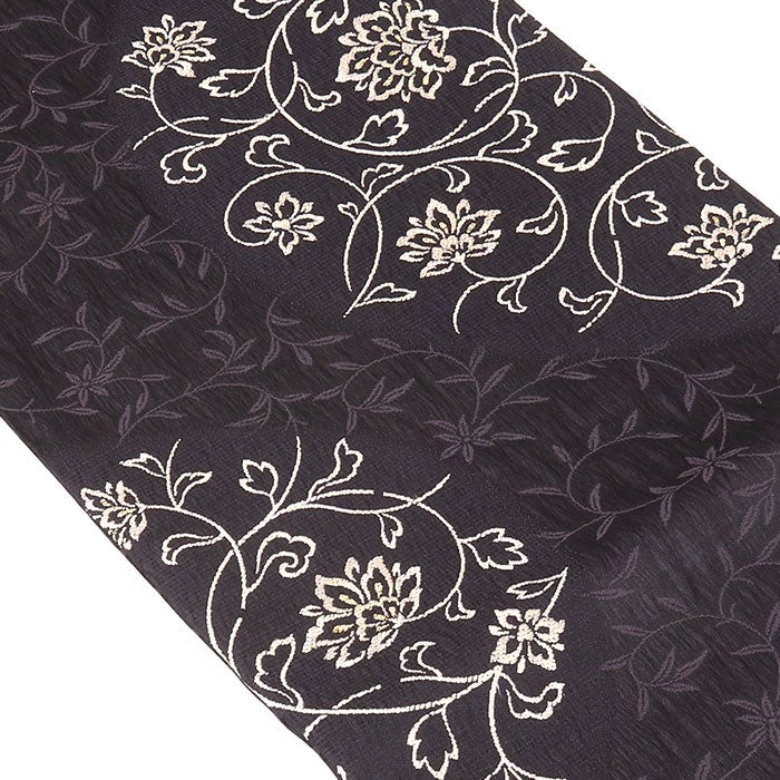 他の画像を見る ≪在庫限り≫ 小紋 紬 色無地 御召 などのお着物に 名古屋帯 黒 ブラック 蔓唐花 西陣織 弥栄織物 普段用 九寸 仕立て上がり 絹 未使用 新品 春 秋 冬 当店特別価格 ¥ 33,000 税込 (0) お気に入りに登録する