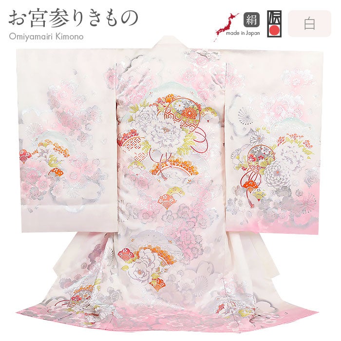 他の画像を見る 女の子 赤ちゃんのお宮参りの着物 煌めく産着 お宮参り 着物 女の子 絹100% 正絹初着 掛け着 産着 モダン 白 桃 牡丹 吉祥花 友禅 経済産業大臣指定伝統的工芸品 ビジュー 銀彩 箔使い 新品 当店特別価格 ¥ 132,000 税込 (0) お気に入りに登録する