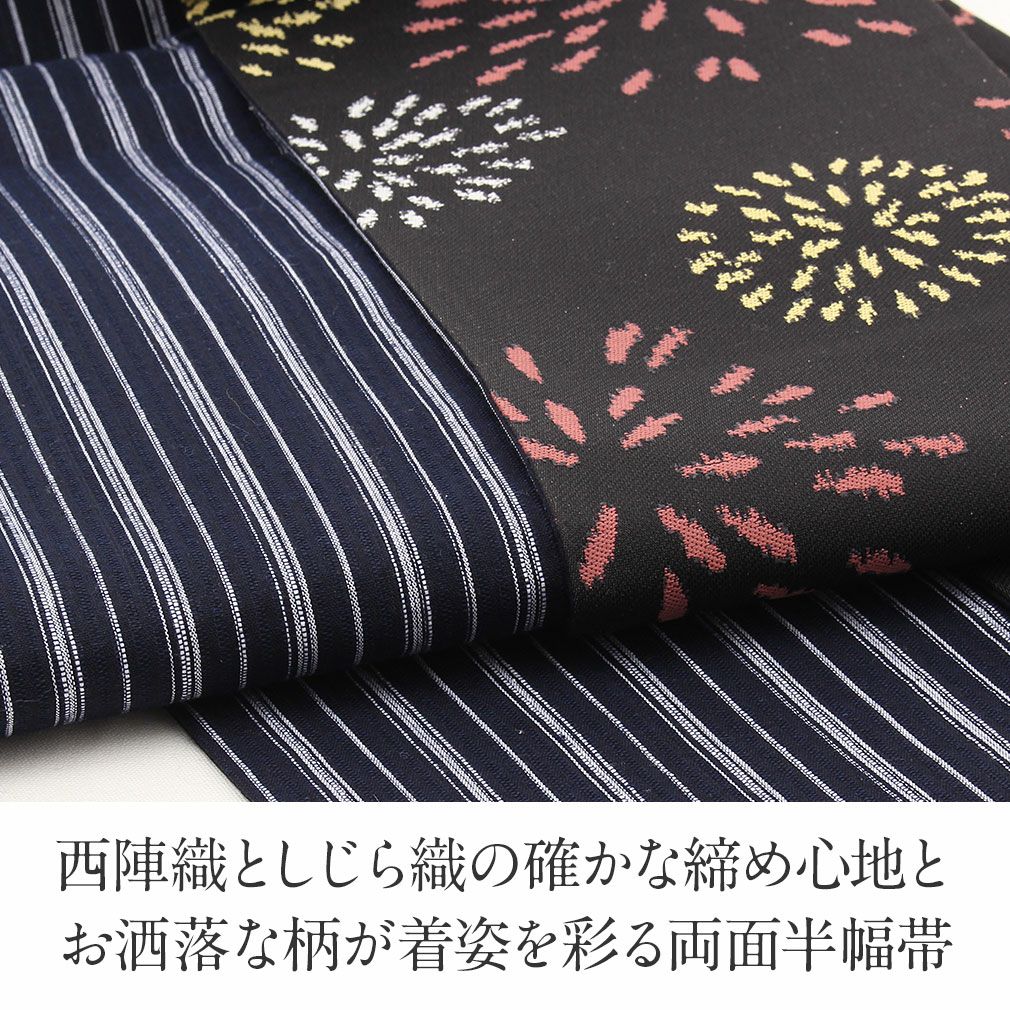 他の画像を見る 【最短日お届け】《西陣×阿波しじら》小紋などのカジュアルなお着物や夏の着物・単衣に 半幅帯 正絹 リバーシブル 西陣織 阿波しじら織 帯 花火 田中伝機 日本製 当店特別価格 ¥ 22,000 税込 カートに入れる お気に入りに登録する