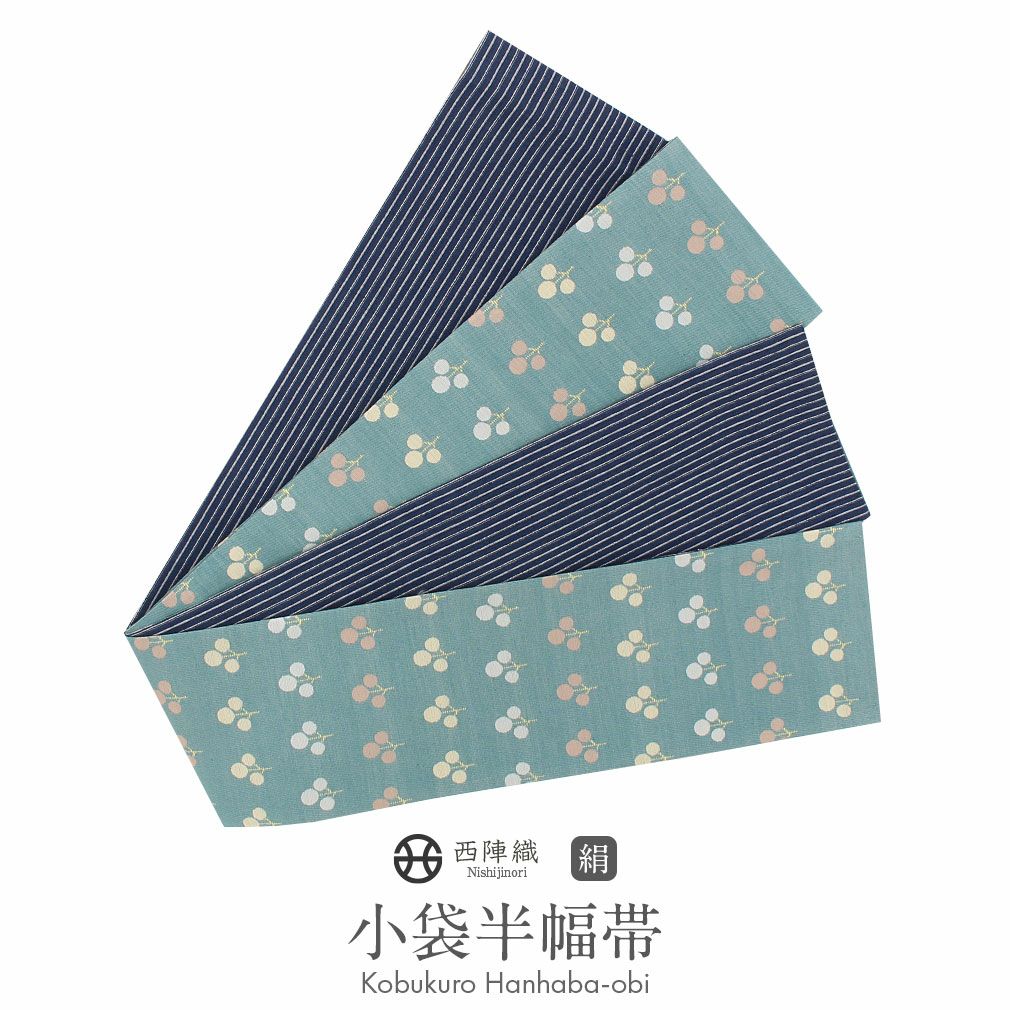 他の画像を見る ≪在庫限り≫ 西陣織 長尺で色々な結び方が楽しめる半幅帯 半幅帯 正絹 帯 半巾帯 普段用 青 紫 緑 水色 生成り 縞 唐草 吉祥文様 リバーシブル 西陣織 大光織物 カジュアル 長尺 日本製 当店特別価格 ¥ 26,400 税込 カートに入れる お気に入りに登録する