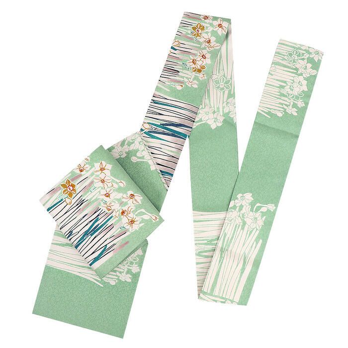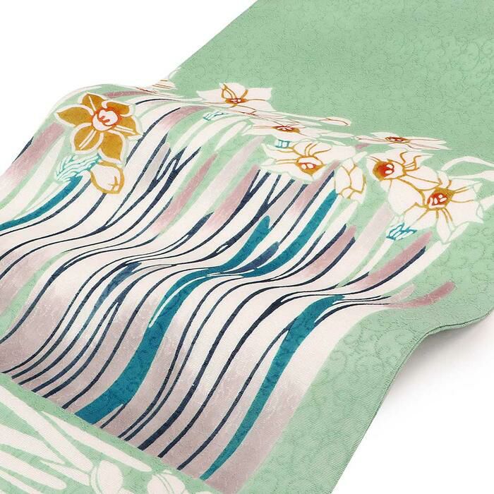 他の画像を見る すぐ使えるお仕立上り 小紋や紬、夏のお着物に 名古屋帯 正絹 九寸 浅葱色 黄緑 白 九寸 帯 <水仙> 透かし織 紋唐草 栗山吉三郎 和染紅型 正絹 純絹織物 仕立て上がり 変わり全通 日本製 当店特別価格 ¥ 99,000 税込 お気に入りに登録する