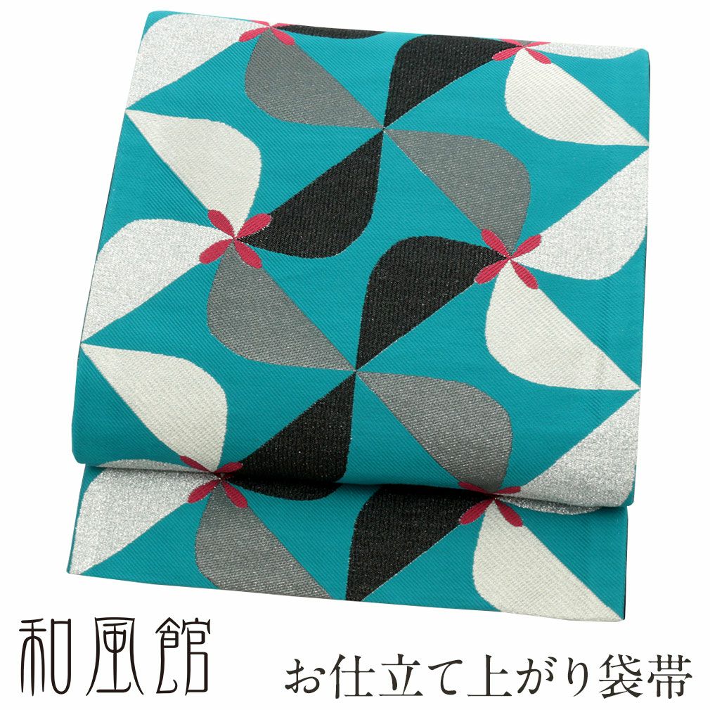 京都発の着物ブランド≪和風館≫は古典的な柄を取り入れつつも、 鮮やかな色遣いや独独のタッチで現代的な華やかさを演出する人気のブランドです。 しなやかで手触りの良い正絹帯地は、結びやすく絹鳴りの音が心地よく響きます。 モダンで個性的な風車の柄は他とはかぶらないお洒落な振袖姿に。 ふんだんに使われた銀糸がキラリと輝き一層華やかな印象にします。 成人式や結婚式といった、振袖を着る際に相応しい、華やかな逸品です。