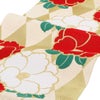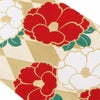 振袖にお使いいただける、西陣織お仕立て上り袋帯です。 輝きを放つ金色のアーガイル模様に赤、白の大椿が帯全体を彩られており、振袖姿に華を添えます。 成人式や結婚式といった、振袖を着る際に相応しい、華やかな逸品です。 帯は伝統工芸の西陣織にて仕立てられており、染められた糸を複雑に織って模様を作るので、完成までに多数の工程があり、とても手間暇がかかる高級絹織物です。 こうして丁寧に織られた生地は、先染めしてから織っているので、一般的な染色法の後染めより丈夫でシワになりにくいのが特徴です。 正絹の帯には、金糸をふんだんに使用しており、魅入ってしまうほどの美しい輝きが魅力的。 光の当たり方で、絹の柔らかな光沢や金糸が反射し、豪華絢爛な帯がお楽しみいただけます。 絹の質感と光沢、大胆で鮮麗な柄が、大切なお祝いの席を華やかに演出してくれるでしょう。 結婚式やパーティーでの振袖はもちろん、一度きりの成人式に相応しい豪華な逸品です。