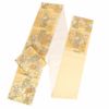結婚式の留袖や、訪問着などの礼装用にお使い頂ける、西陣織お仕立て上り袋帯です。 帯は伝統工芸の西陣織にて仕立てられており、染められた糸を複雑に織って模様を作るので、完成までに多数の工程があり、とても手間暇がかかる高級絹織物です。 こうして丁寧に織られた生地は、先染めしてから織っているので、一般的な染色法の後染めより丈夫でシワになりにくいのが特徴です。 絹の帯には、金糸をふんだんに使用しており、魅入ってしまうほどの美しい輝きが魅力的。 光の当たり方で、絹特有の柔らかな光沢や金糸が反射し、高級感あふれる美しい帯がお楽しみいただけます。 絹の質感と光沢、上品で絶佳なデザインが、大切なお祝いの席を華やかに演出してくれるでしょう。 結婚式の黒留袖、色留袖を始め、七五三や入卒業などの訪問着にもピッタリのおすすめの逸品です。