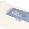 届いて直ぐに使える夏用のお仕立て上がりの袋帯です。 京都西陣で織り上げられ、西陣織の証紙が付いた品質確かな逸品。 絹糸で織られた本商品はしなやかな手触りで締め心地が良く、通気性も優れており6月から8月までご利用になれます。 オフホワイトの帯地に大胆な短冊を藍色で表現し、中に夏らしい蔓花を織り込んだ涼し気な袋帯です。 色無地や小紋、夏紬などカジュアル着物にコーディネートして頂くのがおススメです。 藍染のきものに合わせて頂くと、より涼し気な装いが楽しめます。 帯締めにピンクや藤色系を合わせて頂くと可愛らしく映り、紫色や黄色系で個性的な装いが楽しめます。 本商品はたれ先から前腹まで柄が織り込んでおりますので、帯結びが苦手な方にも結びやすく、着物初心者の方でも柄出しを気にせず気軽に結んでいただけます。