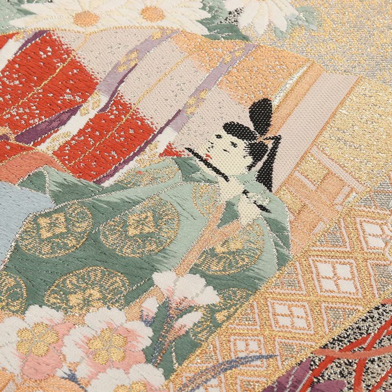 袋帯 フォーマル 帯 留袖 訪問着 < 薄緑 / 平安絵巻 > 正絹 西陣織 となみ織物 仕立て上がり