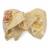 振袖にお使いいただける、西陣織お仕立て上り袋帯です。 落ち着いたベージュの帯地に煌めくゴールド・オレンジ・ブルーなどで、色彩豊かに描かれ帯元を華やかに演出します。 贅沢に使用された金糸の美しい輝きが帯周りを豪華に彩り、大切な日の振袖姿に華を添えます。 王道のスタイルからレトロ、モダンスタイルまで合わせやすく、様々なコーディネートがお楽しみいただけますよ。 帯は伝統工芸の西陣織にて仕立てられており、染められた糸を複雑に織って模様を作るので、完成までに多数の工程があり、とても手間暇がかかる高級絹織物です。 こうして丁寧に織られた生地は、先染めしてから織っているので、一般的な染色法の後染めより丈夫でシワになりにくいのが特徴です。 光の当たり方で、絹の柔らかな光沢が反射し、艶やかな帯がお楽しみいただけます。 絹の質感と光沢、大胆で鮮麗な柄が、大切なお祝いの席を華やかに演出してくれるでしょう。 結婚式やパーティーでの振袖はもちろん、一度きりの成人式に相応しい豪華な逸品です。
