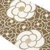 振袖にお使いいただけるお仕立て上り袋帯です。 ブラウン寄りのカーキの地色に、白や金糸などで描かれたカメリアが帯元を華やかに可愛らしく演出します。 花の中心部に金糸を使用しており、ゴージャスな輝きが帯周りを煌びやかに彩り振袖姿に華を添えます。 王道のスタイルからレトロ、個性派まで合わせやすく様々なコーディネートがお楽しみいただけます。 光の当たり方で、絹の柔らかな光沢が反射し、艶やかな帯がお楽しみいただけます。 絹の質感と光沢、大胆で鮮麗な柄が、大切なお祝いの席を華やかに演出します。 結婚式やパーティーでの振袖はもちろん、一度きりの成人式に相応しい豪華な逸品です。