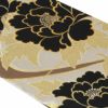 振袖にお使いいただけるお仕立て上り袋帯です。 落ち着いたブラウンの帯地に、牡丹などが大胆に描かれ、帯元を華やかに演出します。 贅沢に使用された金銀糸の美しい輝きが帯周りを豪華に彩り、大切な日の振袖姿に華を添えます。 王道のスタイルからレトロ、モダンスタイルまで合わせやすく、様々なコーディネートがお楽しみいただけますよ。 光の当たり方で、絹の柔らかな光沢が反射し、艶やかな帯がお楽しみいただけます。 絹の質感と光沢、大胆で鮮麗な柄が、大切なお祝いの席を華やかに演出してくれるでしょう。 結婚式やパーティーでの振袖はもちろん、一度きりの成人式に相応しい豪華な逸品です。