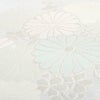 涼やかな薄水色と白の縞地に、菊や梅文様が可愛らしく描かれた、レトロモダンで上品な印象の袋帯です。