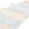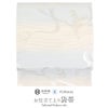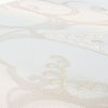アイボリーから水色へとやさしく移ろう地に、シルバーや白、控えめなゴールドで表現された流水模様が優美に広がる一品。