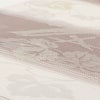 やわらかなアイボリーと薄小豆色の縞地に、シルバーと白で表現された葡萄唐草模様がしっとりと広がる一品。
