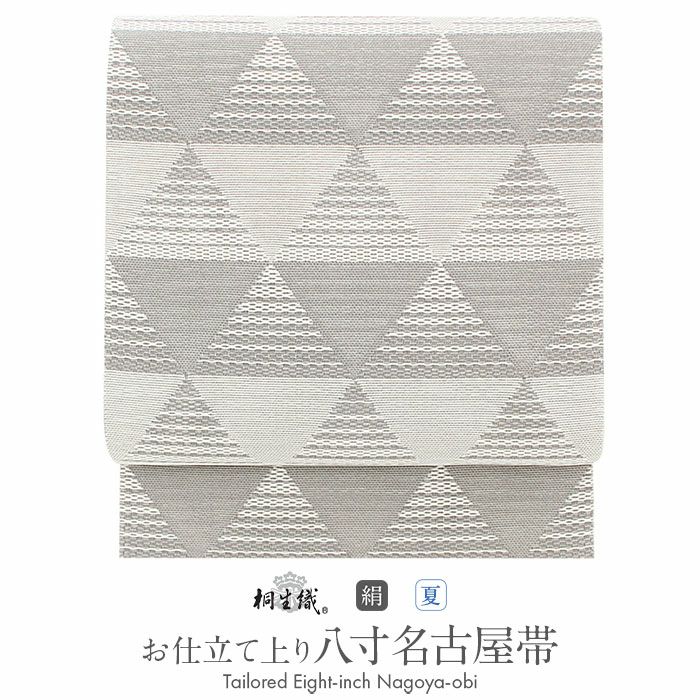 夏帯 八寸 名古屋帯 <白・灰/鱗文> 絹 和紙 桐生和紙織 <高光織物> 仕立て上がり