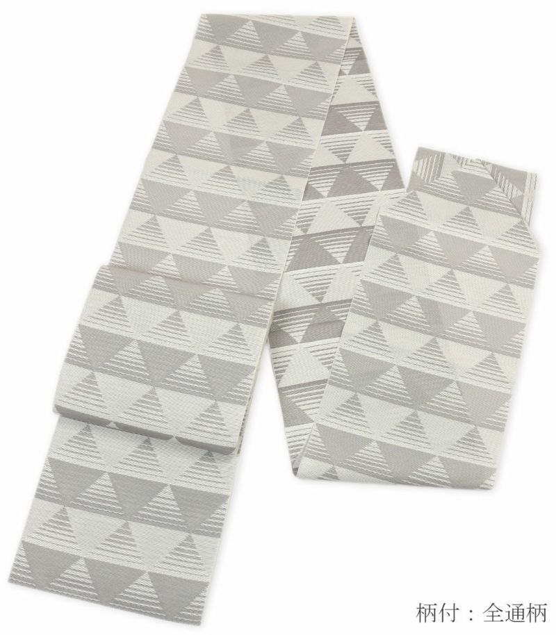 3. 夏帯 八寸 名古屋帯 <白・灰/鱗文> 絹 和紙 桐生和紙織 <高光織物> 仕立て上がり
