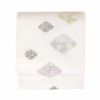 届いて直ぐに使える夏用のお仕立て上がりの名古屋帯です。 京都西陣で織り上げられ、西陣織の証紙が付いた品質確かな逸品。 白地に金やピンク、ブルーで菱型を織り込み、その中にお花や流水を織り込んだ上品な名古屋帯です。 色無地から小紋に合わせて頂けます。 帯地に織り込んだ銀糸が動きによって煌めきより優雅さが際立ちます。 色無地に合わせてお茶会に出かけたり、お友達との気軽なお出掛けには小紋に合わせていかれると良いでしょう。 小物合わせは帯に織り込まれている色で合わせて頂くと上品な装いになります。 本商品は絹糸で織られ、しなやかで手触りも良く通気性に優れ、6月から8月までご使用できます。 柄もたれ先から前腹まで続いている柄付けですので、帯結びが苦手な方でも、着物初心者の方でも気軽に締めて頂ける商品です。