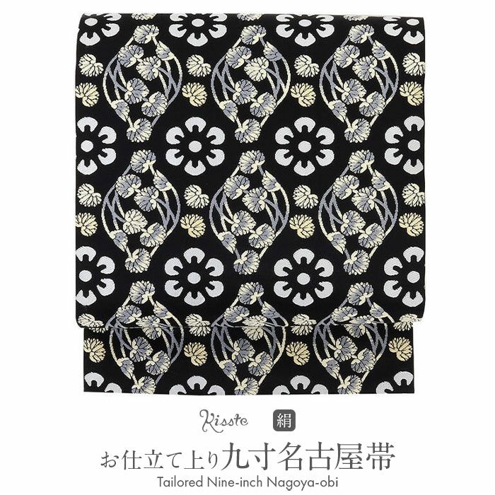《お仕立て上り》【最短日お届け】お稽古や小紋・紬・色無地などカジュアルな着物に 名古屋帯 黒 織 織善 松田忍 普段用 九寸 仕立て上がり 絹 春 秋 冬 おび なごや帯 日本製