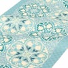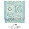 洋風モダンなデザインの「うれしづくし」シリーズの京袋帯です。 きれいなターコイズの帯地にすずらんが丸く咲き誇る、可愛らしく華やかなデザイン。 シンプルな着物も一気にイメージチェンジしてくれ、和にもモダンにも活躍します。 正絹なので手触りもよく、柔らかくて締めやすいので使い勝手も良いとご好評いただいています。 絹の艶やかな光沢が美しく光り、ポリエステルでは出ない高級感も感じさせてくれます。 こちらの京袋帯はすでにお仕立てが済んでいるので、届いたらすぐに使えるのも魅力の一つ。 全通柄の帯は、お太鼓の柄出しが苦手な方にも安心して締めていただけます。 ちょっと個性的なコーデを探している人に是非お勧めしたい商品です。