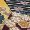 地糸:絹100% 絵緯糸:絹80% 分類外繊維(和紙)20% 絹以外は金属糸風繊維です。