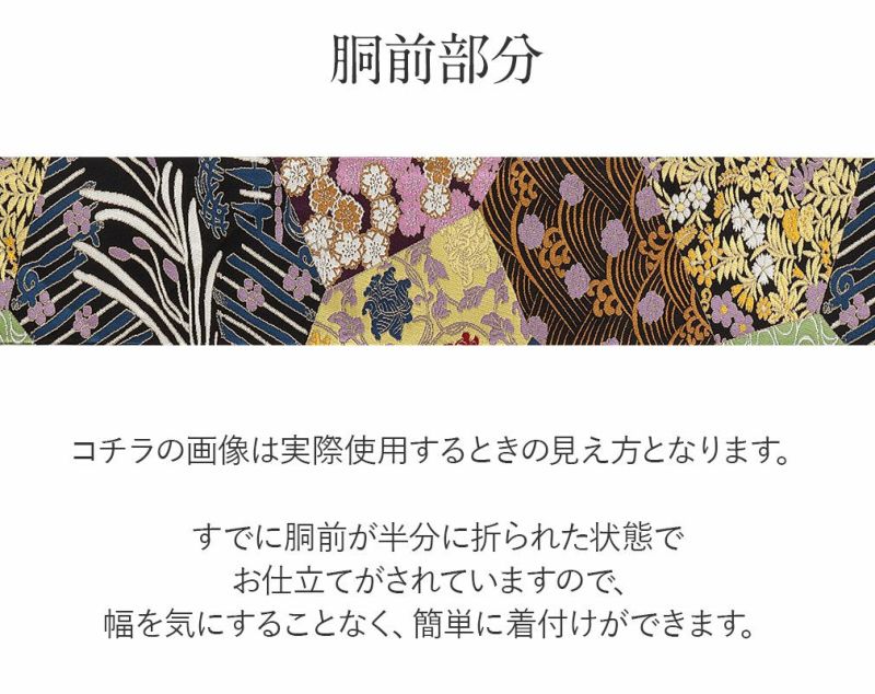 ●実際の商品と同じ色合いに画像修正をしておりますが、環境やモニターの違いにより多少色の違いが出て来ることがあります、ご了承ください。 ●生地の取り方により柄の出方が異なる場合がございます。 ●こちらの帯はすでにお仕立てが済んでいる帯です。 ●お仕立ては『名古屋仕立て』となります。