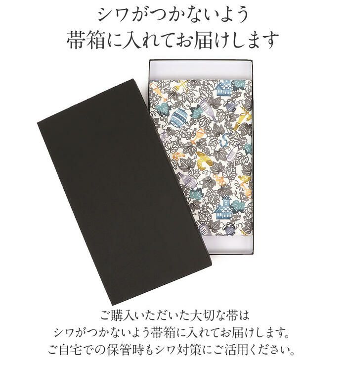 ●実際の商品と同じ色合いに画像修正をしておりますが、環境やモニターの違いにより多少色の違いが出て来ることがあります、ご了承ください。 ●生地の取り方により柄の出方が異なる場合がございます。 ●こちらの帯はすでにお仕立てが済んでいる帯です。 ●お仕立ては『名古屋仕立て』となります。
