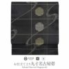 届いて直ぐに使える夏用のお仕立て上がりの名古屋帯です。 京都西陣で織り上げられ、西陣織の証紙が付いた品質確かな逸品。 黒地に流水と雪輪を織り込んだ格調高い名古屋帯です。 絽織の透け感が涼し気にうつり、夏の装いを優雅に演出します。 小紋や紬などのカジュアルな装いにピッタリの名古屋帯、 気軽なお出掛けなどに合わせてご利用ください。 本商品は絹糸で織られ、しなやかで手触りも良く通気性に優れ、6月から8月までご使用できます。 柄もたれ先から前腹まで続いている柄付けですので、帯結びが苦手な方でも、着物初心者の方でも気軽に締めて頂けます。