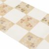 届いて直ぐに使える夏用のお仕立て上がりの九寸名古屋帯です。 京都西陣で織り上げられ、西陣織の証紙が付いた品質確かな逸品。 染められた糸を複雑に織って模様を作るので、完成までに多数の工程があり、とても手間暇がかかる高級絹織物です。 本商品は爽やかな白の地に煌びやかな金糸で市松模様を施し、緑やピンク・白の優しい色合いで萩の柄を丁寧に織り込んだ上品な名古屋帯です。 夏の代表的な素材で絽目が透ける夏用の絹織物。 絽織は細い糸を使って織られているため、とても軽く柔らかい風合いが特徴です。 透け感が涼し気にうつり、夏の装いを優雅に演出します。 付下げから小紋や紬などのカジュアルな装いにピッタリの九寸名古屋帯、 お茶席などお友達とのお出掛けに合わせてご利用ください。 本商品は絹糸で織られ、しなやかで手触りも良く通気性に優れ、初夏から初秋までご使用できます。 柄もたれ先から前腹まで続いている柄付けですので、帯結びが苦手な方でも、着物初心者の方でも気軽に締めて頂けます。