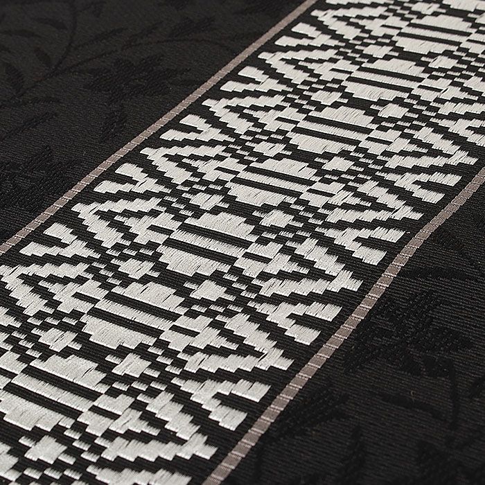 3. 名古屋帯 博多帯 博多織 帯 八寸 黒 献上 桔梗 黒穂間道 森博多織物 正絹 仕立て上がり