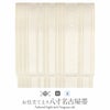 届いて直ぐに使えるお仕立て上がりの博多織 夏用 八寸名古屋帯です。 本場筑前博多織は、その締め心地のよさから多くのきもの愛好家に好まれているお品です。 上品な帯ですのでコーディネートしやすく、 また透け感のある涼し気な印象の帯ですので、初夏・盛夏・晩夏の小紋や紬、色無地、御召などの着物に最適です。 この帯は、繊細かつ精緻な変わり献上柄が特徴で、その模様は日本の伝統美を現代のスタイルに昇華させています。 生成の博多帯は、後ろ姿のお太鼓から女性らしい柔らかな印象を演出してくれます。 小物は淡い色を使って可憐なコーディネートにしたり、思い切った差し色をもってきたりと、着物の楽しみの幅が広がります。 絹糸100%で織り上げているため通気性や吸湿性に優れていることに加え、帯芯もなく透け感のある博多織の夏帯は最も涼しくお召しいただける名古屋帯といえるでしょう。 締め心地も気持ちがよく、「キュッ」とした絹鳴りが響くほど。締まりやすく緩まないのも博多帯ならではです。 帯のどこをとっても柄が連なった「全通柄」ですので、柄出しの難しさもありません。着物初心者さんにも締めていただきやすい帯です。 しっかりと打ち込まれた緯糸が絹の光沢と生地のツヤ・ハリを持たせ、人と差がつく着姿を演出します。 茶道や華道等のお稽古事はもちろん、観劇、芸術鑑賞、ショッピング、ちょっとしたお出掛け等幅広くご活用いただけます。 凛と美しく形が決まる一重太鼓や小粋なふくらみの銀座結びで、本場筑前博多織の帯をご堪能下さい。