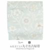 届いてすぐに使える、お仕立て上がりの九寸名古屋帯です。 さっくりとした帯地で通気性が良く、冬以外の季節にお使いいただけます。 涼し気な水色の帯地に白・淡色・銀糸などで表された更紗風の花草文様は、古典的でありながらモダンな雰囲気も持ち合わせています。 上品な帯ですのでコーディネートしやすく様々なシーンに重宝する逸品です。 絹素材の帯は、高級感あふれる美しい帯の質感がお楽しみいただけます。 仕立てはお太鼓結びのしやすい名古屋仕立て。 胴前がすでに半分に折られた状態ですので、帯結びが苦手な方でも締めやすく、 きもの初心者の方でも気軽に結んで頂けます。 意匠こもった深みのある柄行きが、後ろ姿のお太鼓も胴前も凛とした着姿を演出してくれるでしょう。 ぜひご自身の着物コーディネートに取り入れていただきたい名古屋帯です。