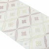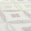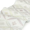 透け感のある淡い緑色の帯地に、白・薄紫・薄黄や銀糸で表された変わり七宝と花菱文様は、古典的でありながらモダンな雰囲気も持ち合わせています。