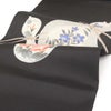 名古屋帯 夏帯 夏名古屋帯 夏帯 濃灰 黒 グレー 瓢箪 桔梗 朝顔 寺崎織物 普段用 九寸 仕立て上がり 正絹 絹 友禅 未使用 新品 初夏 晩夏 盛夏 初秋