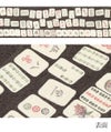 半幅帯 <西陣織:酒井守織物謹製> 正絹 細帯 小袋帯 <こげ茶・アイボリー/麻雀牌> 日本製