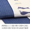 京都西陣の老舗である田中伝機業店謹製のカジュアル半幅帯をご用意致しました。 こちらの半幅帯は表地が西陣織、裏地がしじら織の高級感と実用性を兼ね備えた逸品です。 西陣織にて仕立てられた帯は、絹の艶やかな光沢が魅力的。 裏地は阿波しじら織の特徴であるシボがあることで肌触りがよく、汗をかいても肌に張りつかない 爽やかな締め心地です。 お洒落な柄が着姿を華やかに彩るリバーシブル小袋帯は、 裏側をちらりと見せてワンポイントにしてみたり、リボン結びで裏と表両方見せてみたり、 色々な結び方で着物姿を粋に演出することができます。 表地は、オフホワイトの生地に愛らしい猫が描かれており、上品で大人可愛い印象です。 裏地は、紺地に白色の縞柄がお洒落な小袋帯。 見る人を楽しませる魅力的な帯は、粋な着姿を演出します。 小紋や紬などのカジュアルな装いをはじめ、浴衣や街着など気軽に締めていただきたい逸品です。