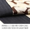 京都西陣の老舗である田中伝機業店謹製のカジュアル半幅帯をご用意致しました。 こちらの半幅帯は表地が西陣織、裏地がしじら織の高級感と実用性を兼ね備えた逸品です。 西陣織にて仕立てられた帯は、絹の艶やかな光沢が魅力的。 裏地は阿波しじら織の特徴であるシボがあることで肌触りがよく、汗をかいても肌に張りつかない 爽やかな締め心地です。 お洒落な柄が着姿を華やかに彩るリバーシブル小袋帯は、 裏側をちらりと見せてワンポイントにしてみたり、リボン結びで裏と表両方見せてみたり、 色々な結び方で着物姿を粋に演出することができます。 表地は、クリーム色の生地に愛らしい鹿が描かれており、上品で大人可愛い印象です。 裏地は、黒地に縞柄がお洒落な小袋帯。 見る人を楽しませる魅力的な帯は、粋な着姿を演出します。 小紋や紬などのカジュアルな装いをはじめ、浴衣や街着など気軽に締めていただきたい逸品です。