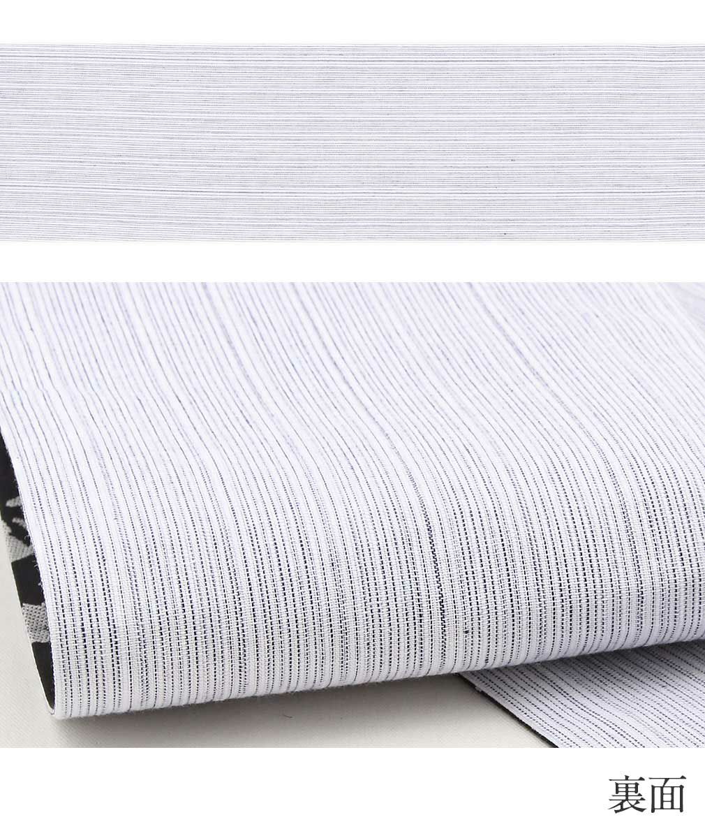 京都西陣の老舗である田中伝機業店謹製のカジュアル半幅帯をご用意致しました。 こちらの半幅帯は表地が西陣織、裏地がしじら織の高級感と実用性を兼ね備えた逸品です。 西陣織にて仕立てられた帯は、絹の艶やかな光沢が魅力的。 裏地は阿波しじら織の特徴であるシボがあることで肌触りがよく、汗をかいても肌に張りつかない 爽やかな締め心地です。 お洒落な柄が着姿を華やかに彩るリバーシブル小袋帯は、 裏側をちらりと見せてワンポイントにしてみたり、リボン結びで裏と表両方見せてみたり、 色々な結び方で着物姿を粋に演出することができます。 表地は、黒の生地にリラックスした猫が描かれており、スタイリッシュで大人かっこいい印象です。 裏地は、白地に縞柄がお洒落な小袋帯。 見る人を楽しませる魅力的な帯は、粋な着姿を演出します。 小紋や紬などのカジュアルな装いをはじめ、浴衣や街着など気軽に締めていただきたい逸品です。