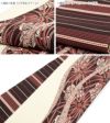 年中通して使えるのが嬉しい、通年用の <本場筑前博多織>長尺小袋帯です。 柔らかくて弾力があり、最高の締め心地を実現した博多織半幅帯。 締める時の絹鳴りの音が心地よく、型崩れしにくい帯結びが楽しめます。 絹独特の艶があり、最高級に相応しい光沢を放つ逸品です。 小紋や紬などのカジュアルな装いをはじめ、浴衣や街着など気軽に締めていただきたい本場筑前の長尺小袋帯です。 表面は渋めのこげ茶とクリームで織り分けられ、乱菊がとてもお洒落でハイセンスな柄付け。 裏面も渋めのこげ茶に、表と同色の赤紫でボーダー&ラインがが織り込まれています。 夏は浴衣に、冬は街着にと、一年を通じ楽しんでお締めいただける最高級の小袋帯です。