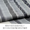 本場筑前博多織 小野織物の正絹半幅帯です。 その締め心地のよさから多くのきもの愛好家に好まれているお品です。 表は、グレーに縞や鱗・水玉模様が描かれた、大人可愛いデザイン。 裏は、表と同じ色合いで縞模様が描かれたシンプルな文様。 絹糸で織り上げているため、通気性や吸湿性に優れ、季節を問わずお使いいただけます。 締め心地も気持ちがよく、「キュッ」とした絹鳴りが響くほど。締まりやすく緩まないのも博多帯ならではです。 しっかりと打ち込まれた緯糸が絹の光沢と生地のツヤ・ハリを持たせ、人と差がつく着姿を演出します。 気軽なお稽古事はもちろん、観劇、芸術鑑賞、ショッピング、ちょっとしたお出掛け等ご活用の幅も広いでしょう。 十分な長さがあるので、結び方によっても様々な表情を演出してくれます。 貝ノ口やかるた結びなどの小粋でスマートな帯結びから、三重仮紐を使ったボリュームのある変わり結びまで楽しめるのが半幅帯の魅力です。 1本増えるだけで着物コーディネートの楽しみがグッと広がる半幅帯、ぜひワードローブに加えてみてはいかがでしょうか。