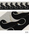 かわいらしく、一点ごとに個性がキラリと光る「召しませ花」のリバーシブル半幅帯です。 バレエの「白鳥の湖」をモチーフにデザインされた本商品。 表面は、白鳥と黒鳥が互い違いに模様を生み出す、ユニークなデザイン。 裏面は、紫地にレース模様とバレリーナが並んで描かれた模様です。 両面どちらもおしゃれな柄で着姿を華やかに彩るリバーシブル小袋帯は、 裏側をちらりと見せてワンポイントにしてみたり、リボン結びで裏と表両方見せてみたり、 色々な結び方で着物姿を楽しく演出することができます。 柔らかな絹の生地をデジタル捺染プリントで柄付け。 織の帯では実現できないような細かく複雑な模様や繊細な色彩感も楽しんでいただけるのが特長です。 絹への染色は化繊や綿生地よりも色の出方も深みがあって高級さを感じられます。 柔らかな絹を質感を生かすため、とろみを感じられるような最も柔らかい帯芯を採用。 はんなりとした帯結びも楽しんでいただけます。 十分な長さがあり、リバーシブルで両面がおしゃれなので、出す柄や結び方によっても様々な表情を演出してくれます。 貝ノ口やかるた結びなどの小粋でスマートな帯結びから、三重仮紐を使ったボリュームのある変わり結びまで楽しめるのが半幅帯の魅力です。 1本増えるだけで着物コーディネートの楽しみがグッと広がる半幅帯、ぜひワードローブに加えてみてはいかがでしょうか。