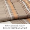 本場筑前博多織 小野織物の正絹半幅帯です。 本場筑前博多織は、その締め心地の良さから多くのきもの愛好家に愛されている逸品です。 表は、落ち着いた薄茶色の帯地に格子柄などが描かれた、お洒落なデザイン。 裏は、同色地に縞模様が入ったシンプルなデザインで、どちらも魅力的です。 絹糸で織り上げられているため、通気性や吸湿性に優れ、季節を問わず快適にお使いいただけます。 締め心地も抜群で、「キュッ」とした絹鳴りが響くほどの締まりやすさと緩まない特性は、博多帯ならではの魅力です。 しっかりと打ち込まれた緯糸が絹の光沢と生地のツヤ・ハリを持たせ、人と差がつく着姿を演出します。 気軽なお稽古事はもちろん、観劇、芸術鑑賞、ショッピング、ちょっとしたお出掛けなど、幅広いシーンでご活用いただけます。 十分な長さがあり、結び方によって様々な表情を演出できるのも魅力の一つです。 貝ノ口やかるた結びなどの小粋でスマートな帯結びから、三重仮紐を使ったボリュームのある変わり結びまで楽しめる半幅帯は、1本増えるだけで着物コーディネートの楽しみがグッと広がります。 ぜひ、この素敵な半幅帯をワードローブに加えて、着物ライフをさらに充実させてみませんか?