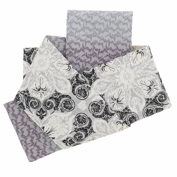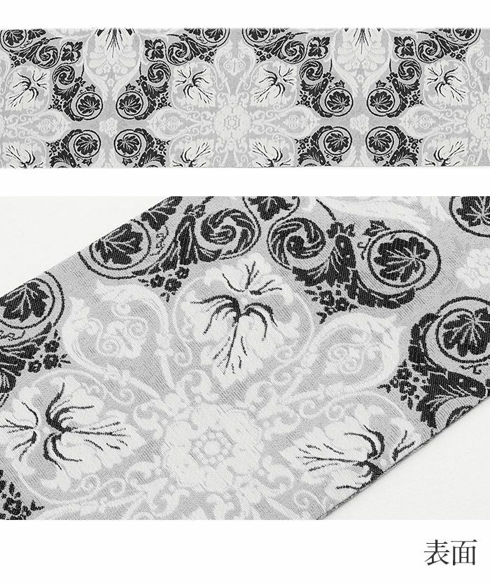 西陣織の名門・大光織物が丹精こめて織り上げた、風格あるリバーシブル半幅帯です。 繊細で緻密な織りの美しさに加え、アレンジしやすい長尺仕様で、日常の装いから特別な日のコーディネートまで幅広く活躍する一本です。 ■表面は、上品なグレーを基調に華やかな宝相華文が織り出され、洗練された大人の装いに仕上がっています。 ■裏面は、波が揺れるようなモチーフを取り入れたモダンな縞柄があしらわれ、落ち着いた色の切り替えが奥行きのある美しさを生み出します。 両面とも上質感あふれる意匠のため、その日の気分や着物に合わせて雰囲気の異なるコーディネートを楽しめるのが魅力です。 ■長さはゆとりのある長尺タイプ。 ふくら雀、文庫、変わり文庫、リボン結びなど、長さをいかした華やかな帯結びが美しく決まり、後ろ姿をいっそう印象的に仕上げてくれます。 リバーシブル仕様のため、どちらの柄を見せるか、結び方をどう変えるかによって、多彩な表情を生み出せるのも嬉しいポイントです。 本品は伝統工芸である西陣織によって仕立てられ、色糸を先に染めてから緻密に織り上げることで模様を作り出すため、完成までに多くの工程と高度な技術を要する高級絹織物です。 先染めならではの丈夫さやシワになりにくい性質を持ち、しっかりとした張りがあるため、美しい帯結びを長時間保ちやすいのも特長です。 一本加わるだけで装いの幅がぐっと広がる半幅帯。ぜひワードローブに取り入れて、着物コーディネートをより一層お楽しみください。