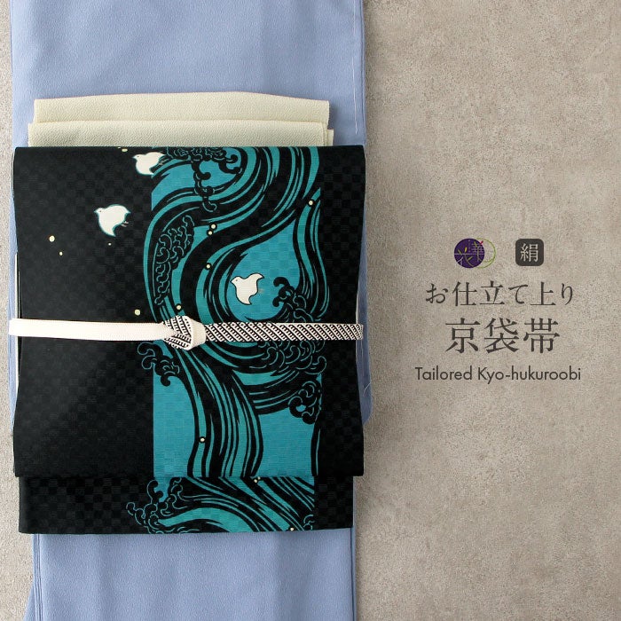 他の画像を見る 【最短日お届け】≪召しませ花≫小紋・紬・色無地などカジュアルな着物に 京袋帯 <黒/波紋と千鳥> 正絹 仕立て上がり 召しませ華 ブラック 青緑 ターコイズ 日本製 当店特別価格 ¥ 57,200 税込 (0) お気に入りに登録する