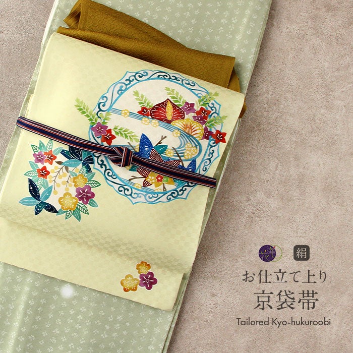 他の画像を見る 【最短日お届け】≪召しませ花≫小紋・紬・色無地などカジュアルな着物に 京袋帯 <緑/梅と菊に松葉> 正絹 仕立て上がり 召しませ華 クリーム 淡緑 黄緑 日本製 当店特別価格 ¥ 57,200 税込 (0) お気に入りに登録する