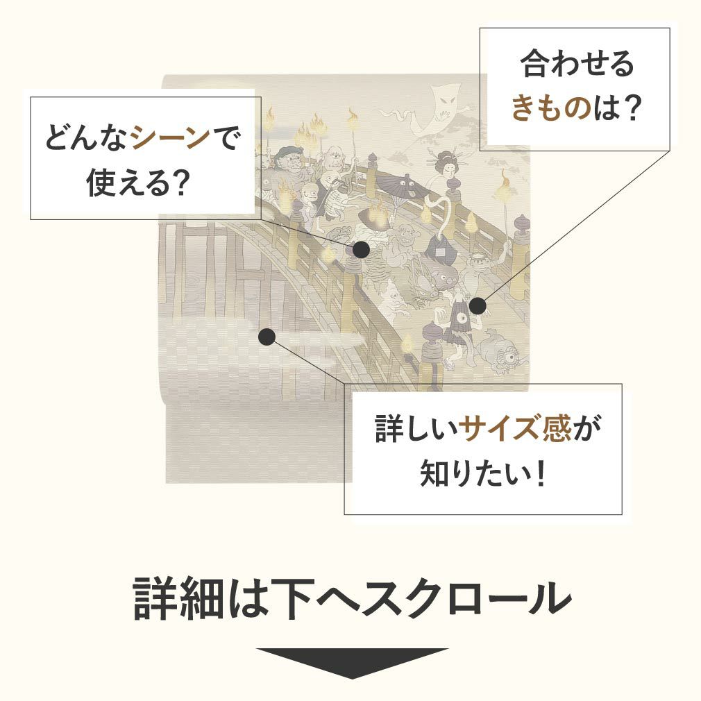 他の画像を見る 【最短日お届け】《召しませ花》小紋などのカジュアルなお着物や夏の着物・単衣に 半幅帯 長尺 ベージュ 帯 リバーシブル 召しませ花 百鬼夜行 日本製 当店特別価格 ¥ 44,000 税込 (0) お気に入りに登録する