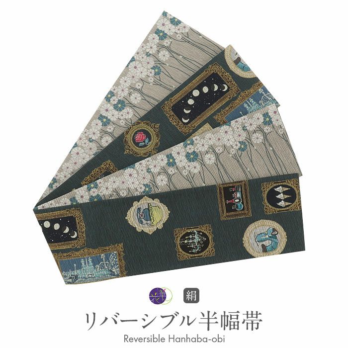 他の画像を見る 【最短日お届け】《召しませ花》小紋などのカジュアルなお着物や夏の着物・単衣に 半幅帯 帯 半巾帯 普段用 深緑 グレー ローマの休日 花 リバーシブル 召しませ花 カジュアル 絹 長尺 日本製 当店特別価格 ¥ 44,000 税込 (0) お気に入りに登録する