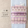 洋風モダンなデザインの「うれしづくし」シリーズの京袋帯です。 紫がかったピンクの帯地に華紋が並べられた、モダンで華やかなデザイン。 シンプルな着物も一気にイメージチェンジしてくれ、和にもモダンにも活躍します。 正絹なので手触りもよく、柔らかくて締めやすいので使い勝手も良いとご好評いただいています。 絹の艶やかな光沢が美しく光り、ポリエステルでは出ない高級感も感じさせてくれます。 こちらの京袋帯はすでにお仕立てが済んでいるので、届いたらすぐに使えるのも魅力の一つ。 全通柄の帯は、お太鼓の柄出しが苦手な方にも安心して締めていただけます。 ちょっと個性的なコーデを探している人に是非お勧めしたい商品です。