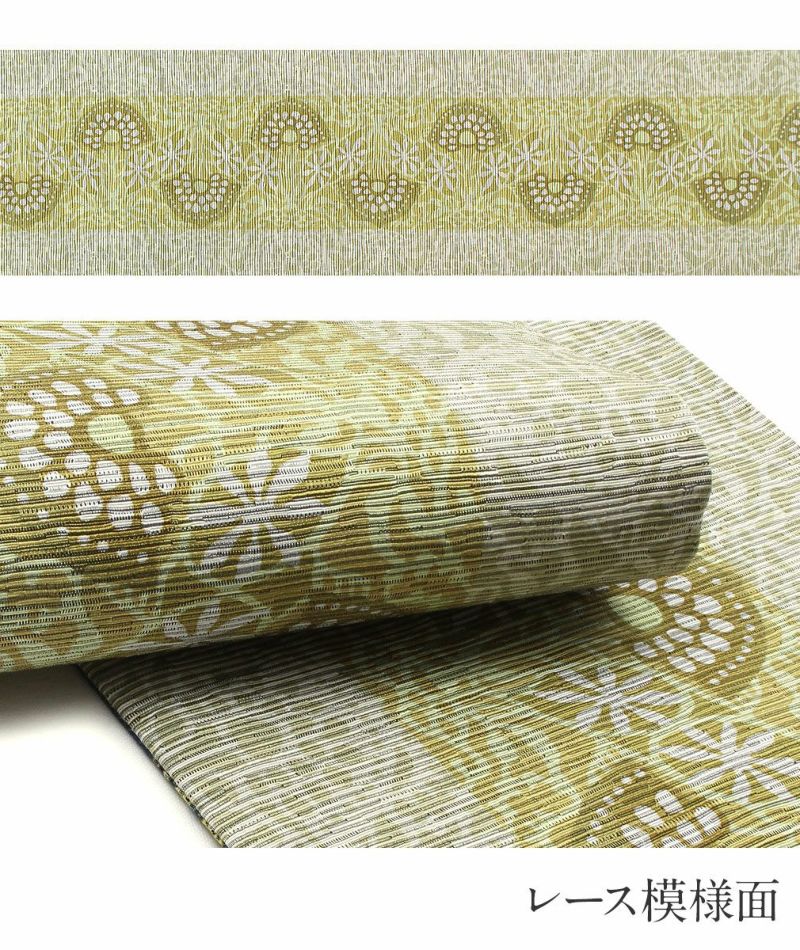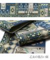 かわいらしく一点ごとに物語性のある召しませ花の半巾帯です。 お洒落な柄が着姿を華やかに彩る、リバーシブル小袋帯は、 裏側をちらりと見せてワンポイントにしてみたり、リボン結びで裏と表両方見せてみたり、 色々な結び方で着物姿を粋に演出することができます。 ブルー地に、華やかな色遣いでカードと花園が描かれたアンティークな雰囲気。 裏地は、淡いグリーン地にレース模様が施された可愛らしい印象。 絹とポリエステルを合わせて織り合わせており、しなやかな手触りと締め心地の良い逸品です。 丁寧に仕上げられた信頼のある日本製の帯は、仕立て上がりですので、お届け後すぐにお召しいただけます。 小紋や紬などの普段のお着物にあわせてみたり、注目を集めること間違いなしの1本です。 自由な帯結びで個性的なコーディネートがお楽しみいただけます。