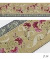 かわいらしく一点ごとに個性がキラリと光る召しませ花の半巾帯です。 お洒落な柄が着姿を華やかに彩る、リバーシブル小袋帯は、 裏側をちらりと見せてワンポイントにしてみたり、リボン結びで裏と表両方見せてみたり、 色々な結び方で着物姿を粋に演出することができます。 表面は、くすんだ黄色地に赤紫の撫子が描かれた色合いのコントラストが美しいデザイン。 裏面は、青みがかった緑地にカラフルな花房が並べられたお洒落な柄行。 絹とポリエステルを合わせて織り合わせており、しなやかな手触りと締め心地の良い逸品です。 丁寧に仕上げられた信頼のある日本製の帯は、仕立て上がりですので、お届け後すぐにお召しいただけます。 小紋や紬などの普段のお着物にあわせてみたり、注目を集めること間違いなしの1本です。 自由な帯結びで個性的なコーディネートがお楽しみいただけます。
