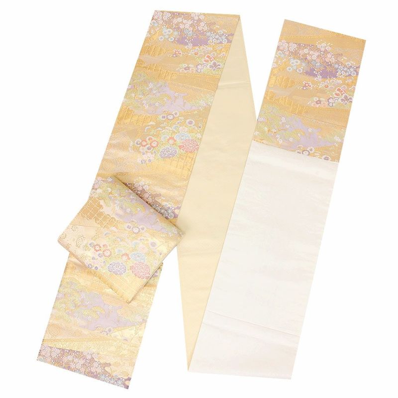 袋帯 帯 留袖 訪問着 <ゴールド/和の花に伝統文様> 西陣織 正絹 <京洛苑たはら> 仕立て上がり